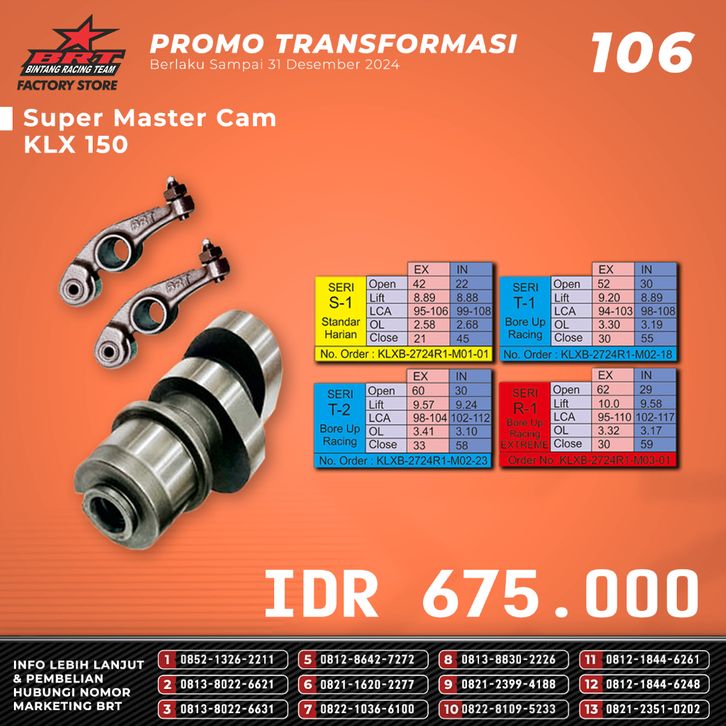 MASTER CAM NOKEN AS BRT AS KLEP RRA BRT KLX 150 DTRACKER 150