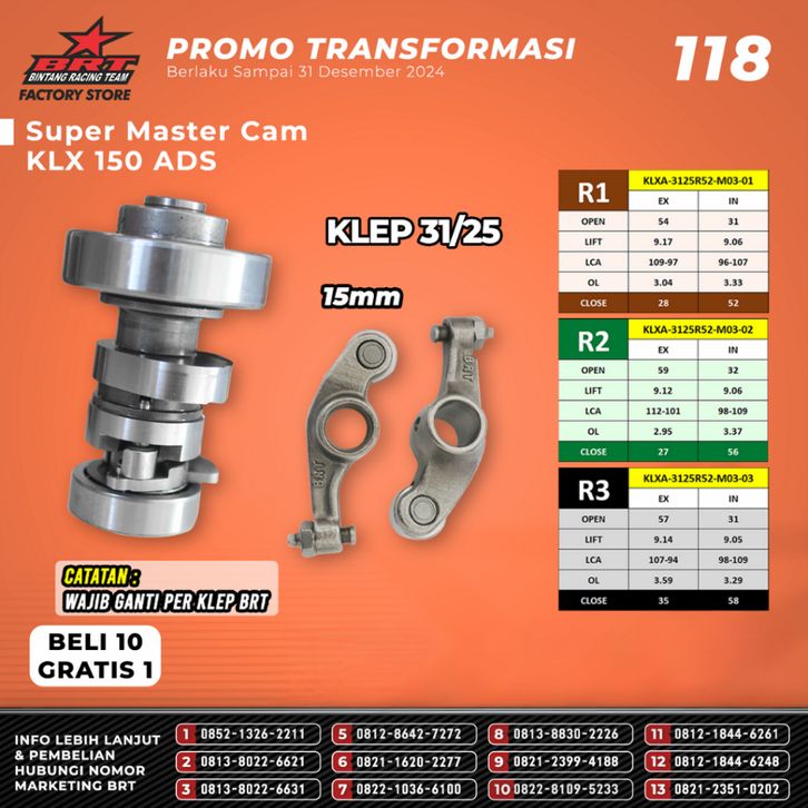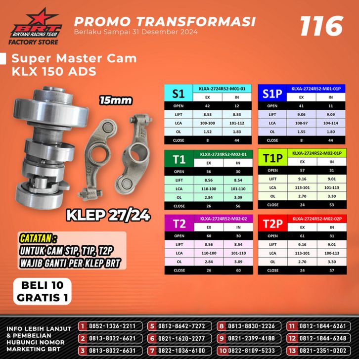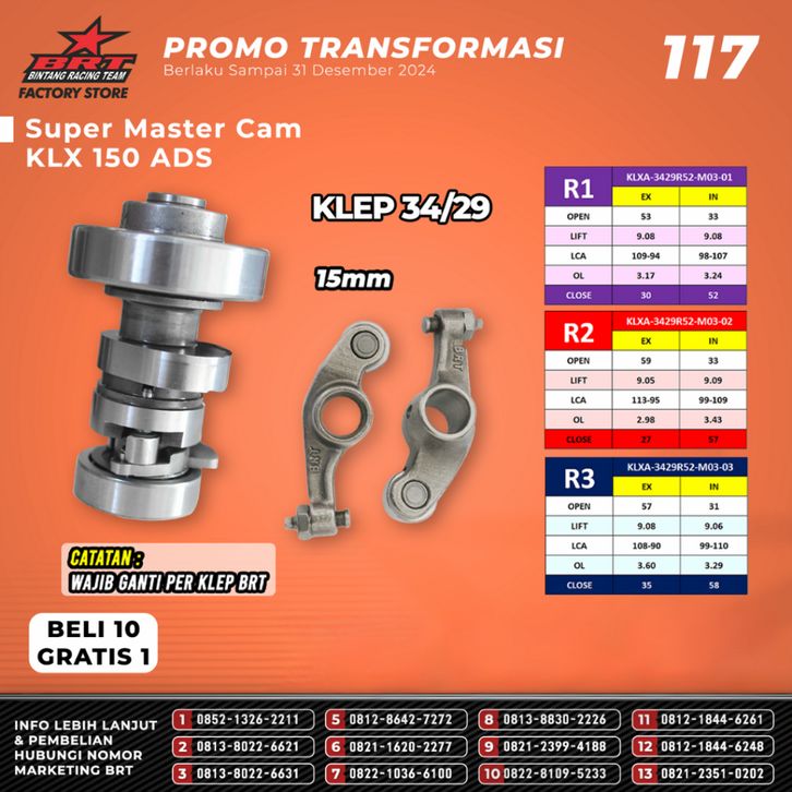 MASTER CAM ADS BRT NOKEN AS RRA KLX 150 DTRACKER 150 KLX 140 STANDAR