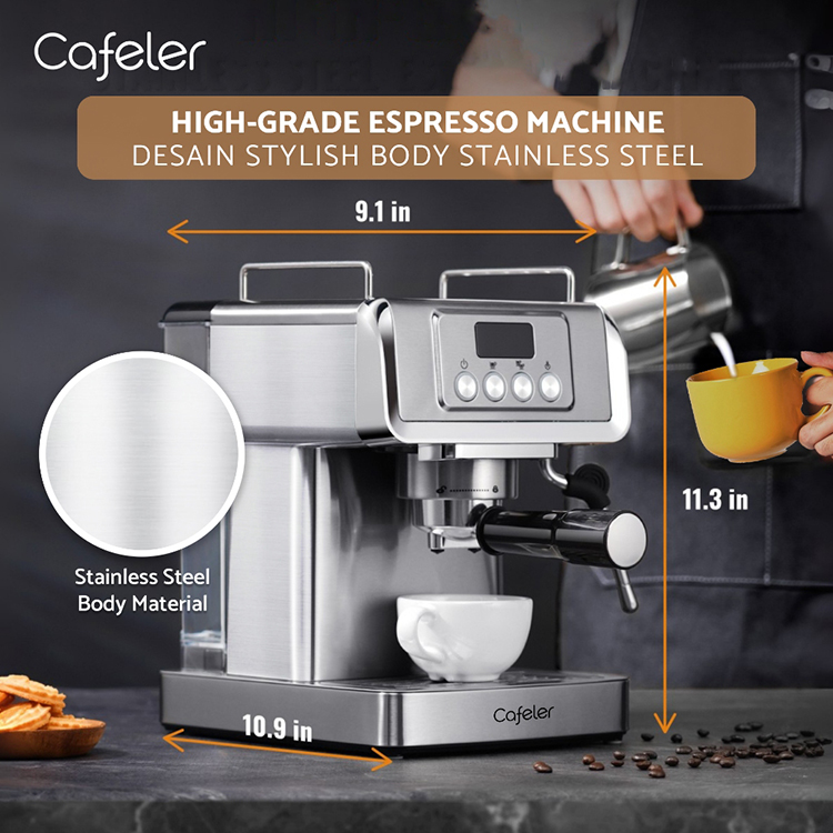 Mesin Kopi Espresso Cafeler 20 Bar Coffee Maker Stainless Steel Fast Heating Sistem