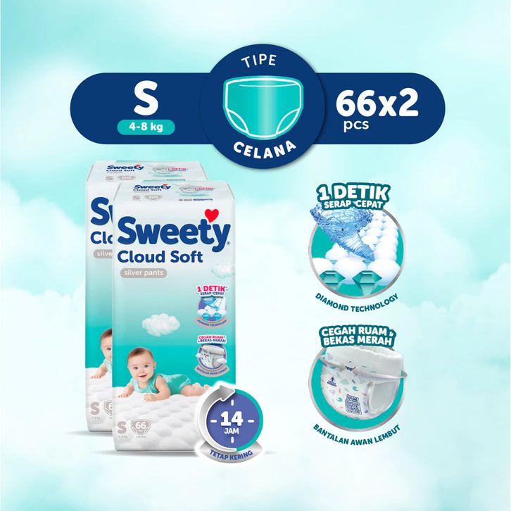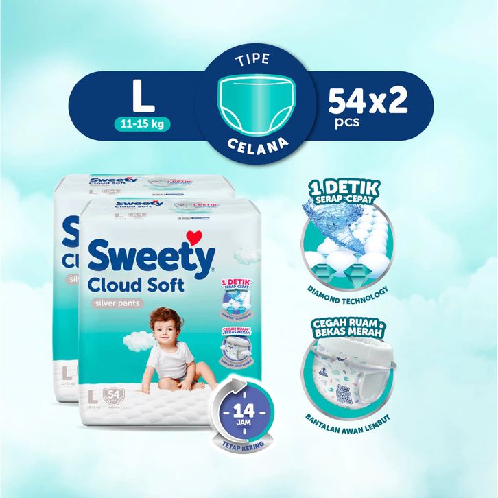 Paket 2 Ball Lebih Murah Sweety Silver Pants Cloud Soft S66 M60 L54 XL42 XXL32 Popok Celana Baby Diapers
