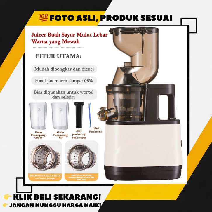 [Mall]Slow Juicer SJC02 Extractor 800ML Large Kaliber Blender Stainles Steel Juicer Jus 180W Portable Juicer Tanpa Ampas