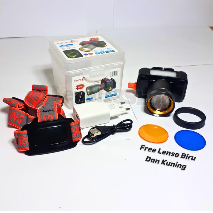 Senter Kepala Zoom 250W SUNPRO SL-9981 Free Lensa Kuning Headlamp Led Laser Dimmer ( Tombol Putar )