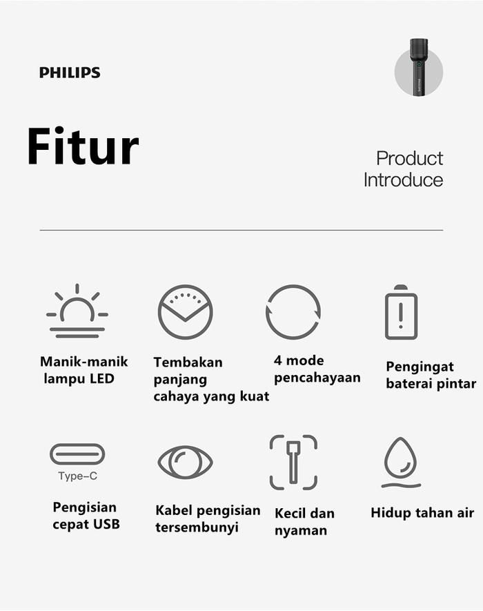 Philips Lampu Senter LED / Senter Police Swat Flashlight Super Terang