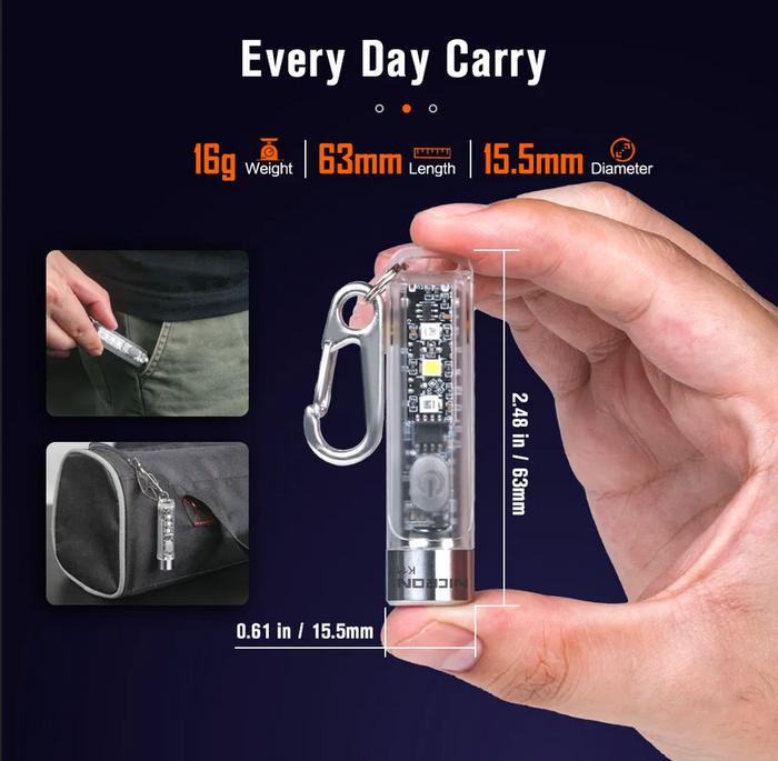 Senter Mini Keychain Nicron K11 3 Warna - 400 Lumens - Jarak Sorot 74 Meter - LED Putih - Waterproof