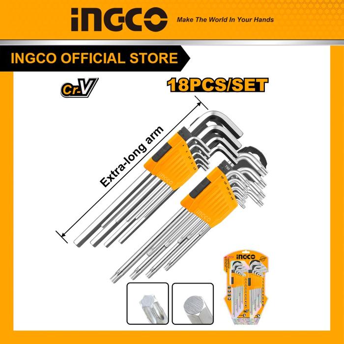 HHKSET0181 KUNCI L PANJANG SET KOMBINASI BIASA ,BINTANG 18 Pcs INGCO