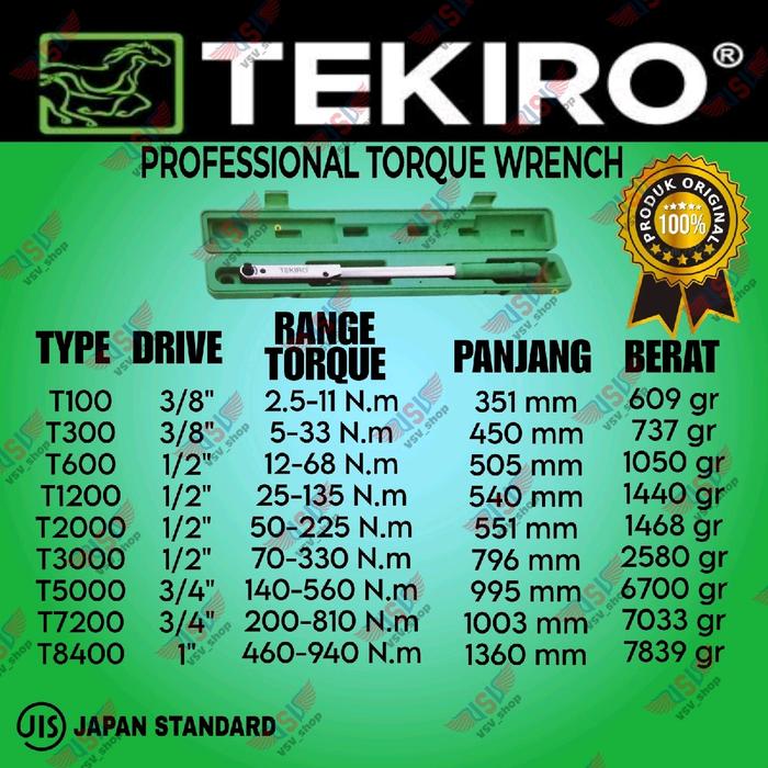 TEKIRO Kunci Torsi 5-33Nm 3/8"Drive Professional Torque Wrench T300 Ku