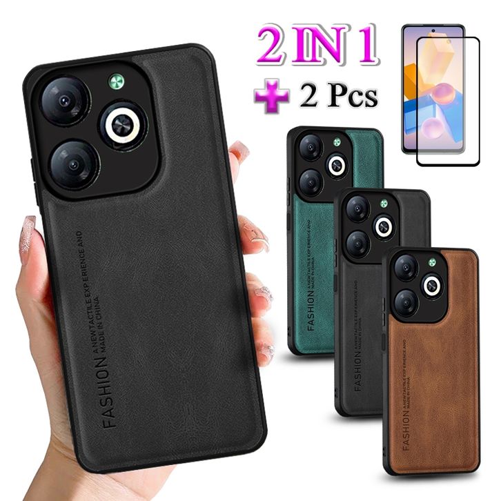 2 Dalam 1 Case Tecno Spark 20C Kotak Kulit Minimalis Dengan Film Keramik Layar Protektif
