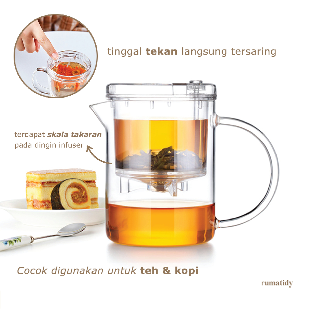 【RUMATIDY】CREMA Tea Infuser Coffee Maker Cangkir Teh Kopi dengan Saringan Teh Kopi Dispensing Teapot Coffee Brewer Tea M