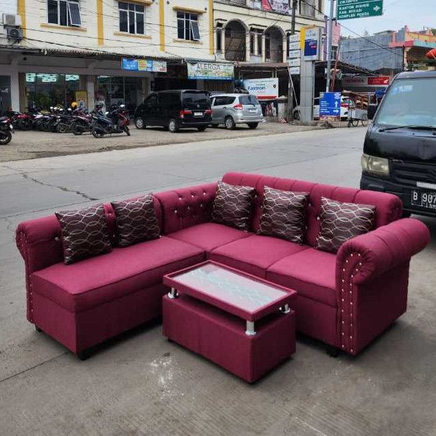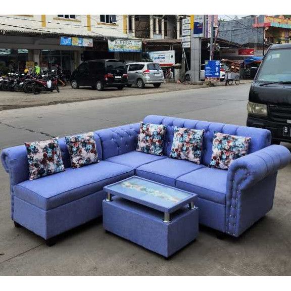 Sofa L Putus Kancing Bahan Kanvas / Sofa L Minimalis / Sofa L Santai Bahan Beludru/ SOFA LETTER L 1