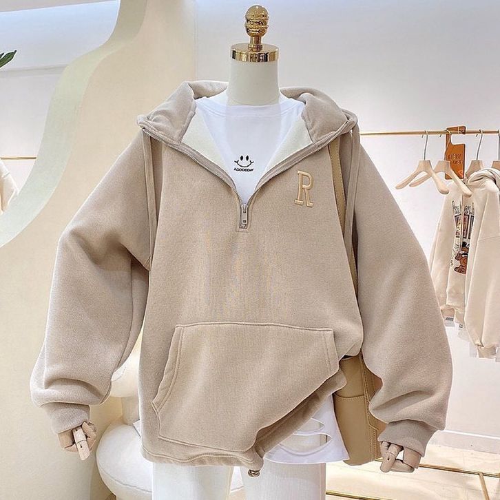 Vallina - R Bordier Half Zipper Sweater Hoodie Oversized Outerwear Remaja Wanita Korean Style Premium