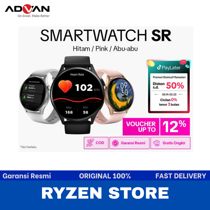 ADVAN Smartwatch SR AI Voice Assistant Display AMOLED 1.43” inch Wireless Bluetooth Call Waterproof IP68 AOD