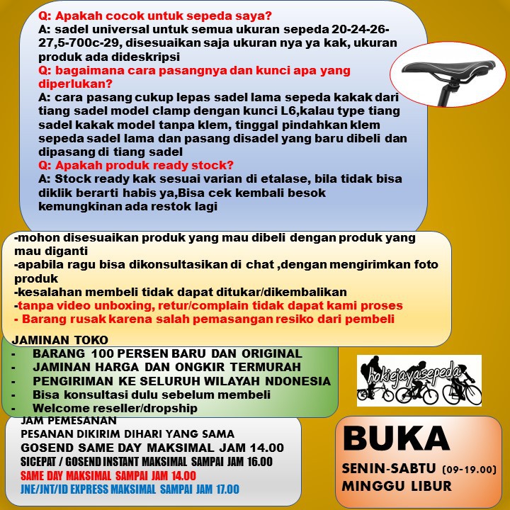 PACIFIC SADEL GEL H-187 Sepeda jok gel empuk dan ringan untuk sepeda roadbike / gunung / lipat / fixie