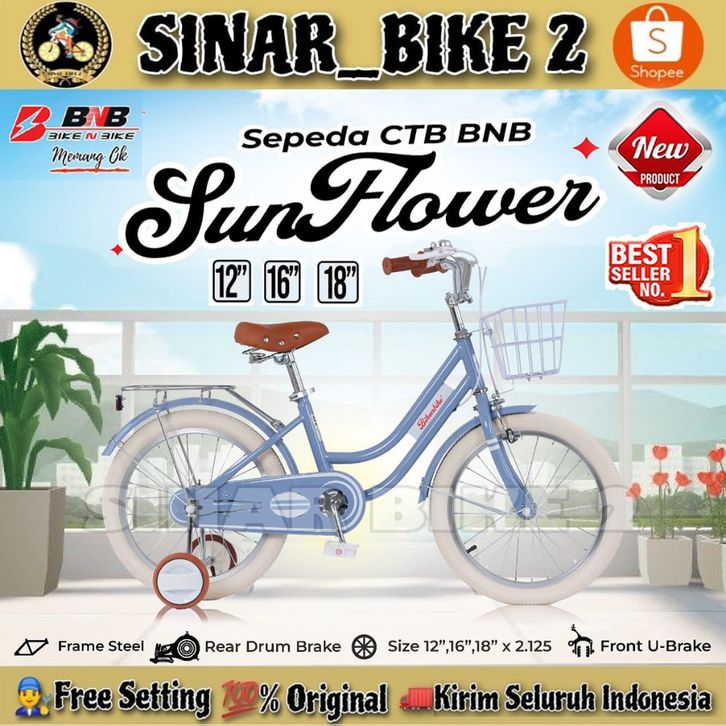 Sepeda Anak Perempuan BNB SUNFLOWER // BNB UNIVERSE Classic City Bike Ukuran 12 16 18 Inch Keranjang Usia 2-8 Tahun