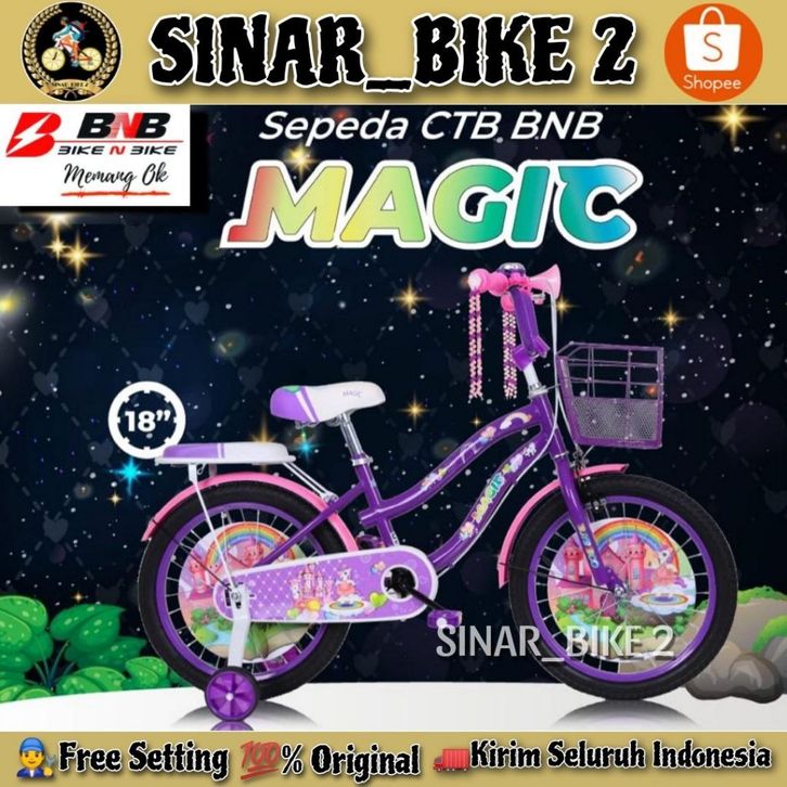 Sepeda Anak Perempuan BNB MAGIC Ukuran 12 16 &18 Inch Keranjang