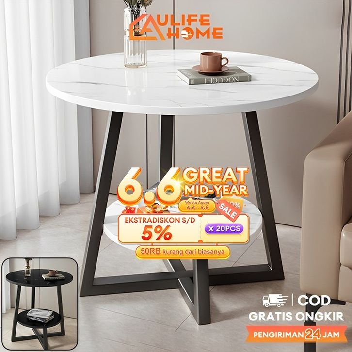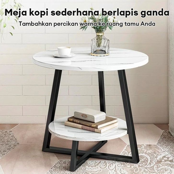 Meja Ruang Tamu Marmer Meja Kopi Besi Meja Bulat 2 Susun Meja Minimalis Tamu Meja Pojok Bunga