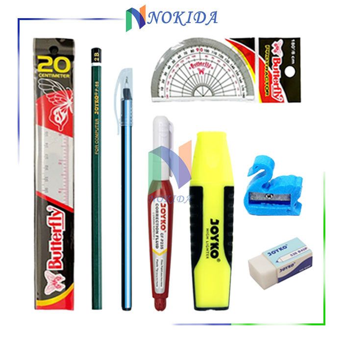 Nokida Perlengkapan Peket Alat Tulis Sekolah + Buku Panjang (SMP / SMA / SMK) / Buku B5 Kampus Boxy 42 Lembar 6 Pcs / Bu