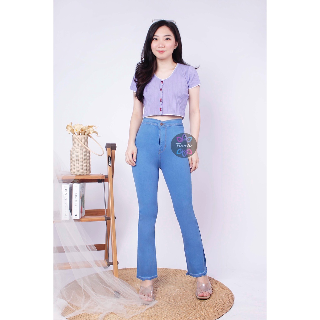 (Gratis Ongkir) Highwaist Jeans Cutbray Rawis / HWCUTBRAY