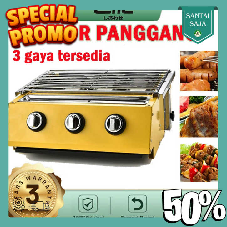 QME Kompor Panggangan Sosis 2-4 Tungku BBQ Grill Gas alat pemanggang daging stainles