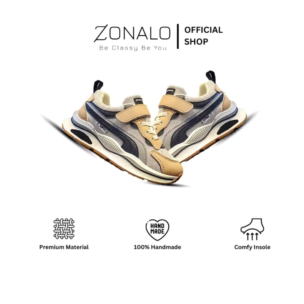 PROMO TERLARIS ZONALO KIDS WEAR SEPATU ANAK LAKILAKI DAN PEREMPUAN UNISEX SEPATU SNEAKERS ANAK QN COKLAT