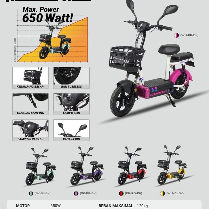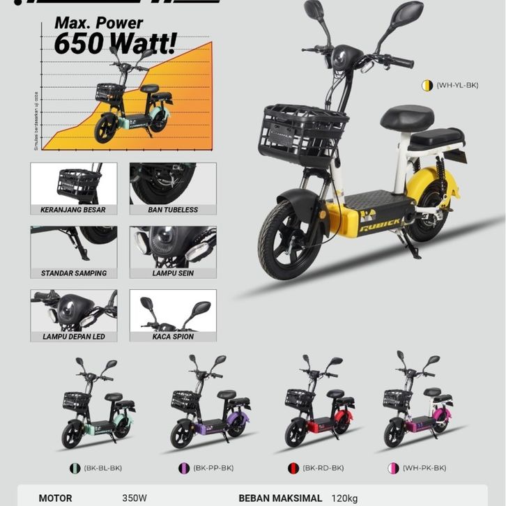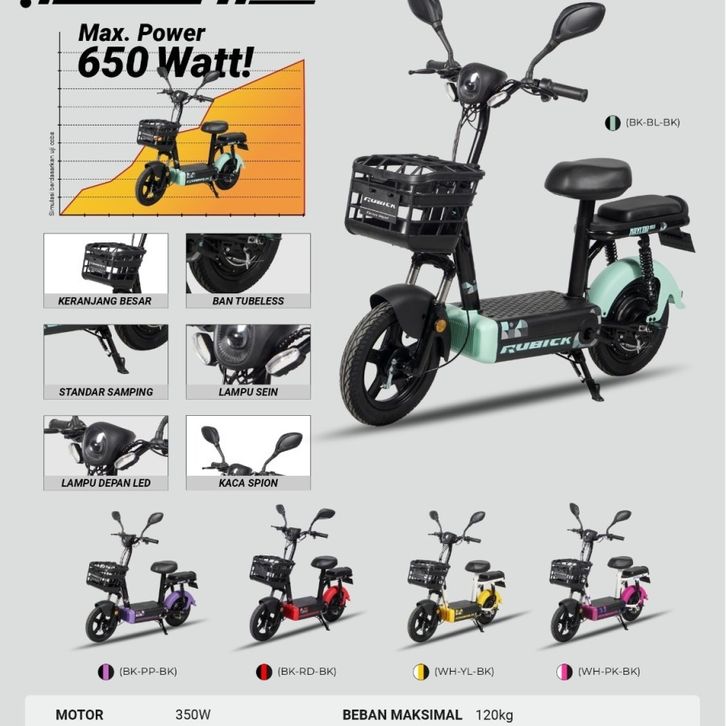 Sepeda listrik 14 x 2.50 inch rubick dewasa dan anak remaja 350 watt