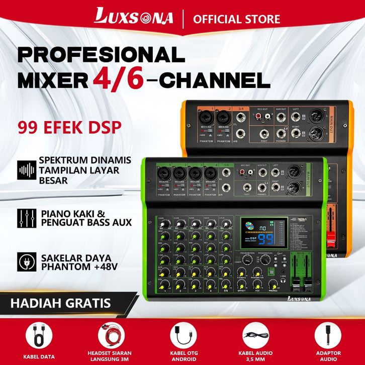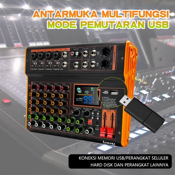 4/6 channel mixer audio /mixerkaraoke/99DSP efek layar besarpencampur Audio/misker audio 4 Saluranmultifungsi/mendukung
