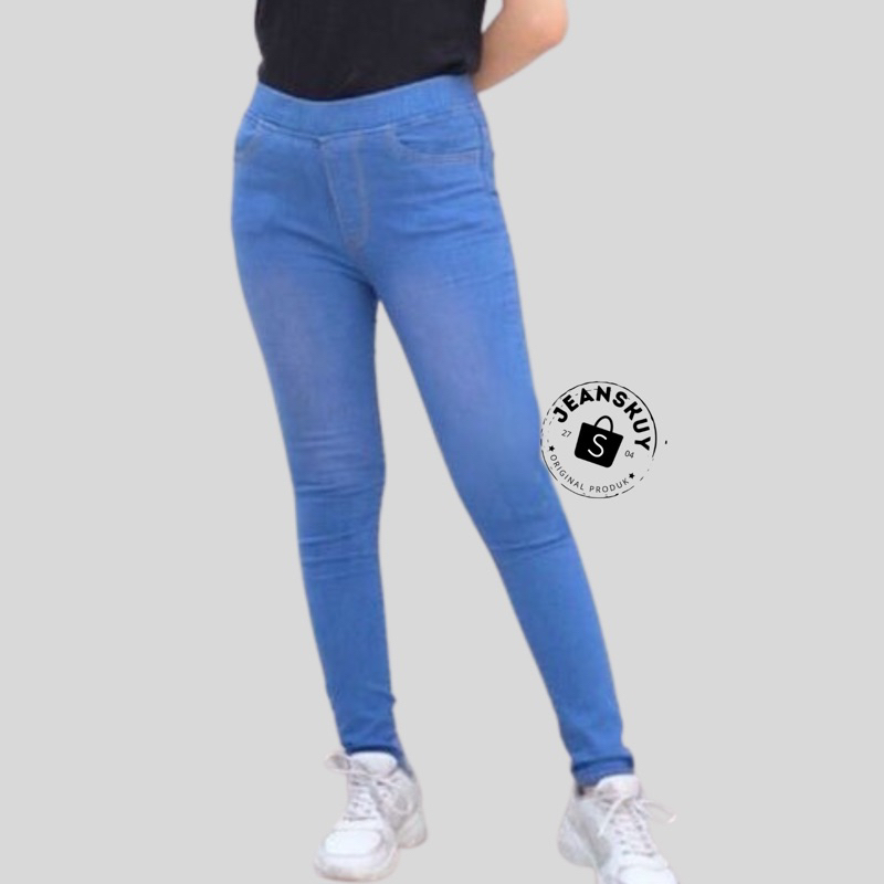 (Gratis Ongkir) JEANSKUY - Legging Jeans Jumbo Jeans Pinggang Karet Jumbo Celana Jeans Bigsize
