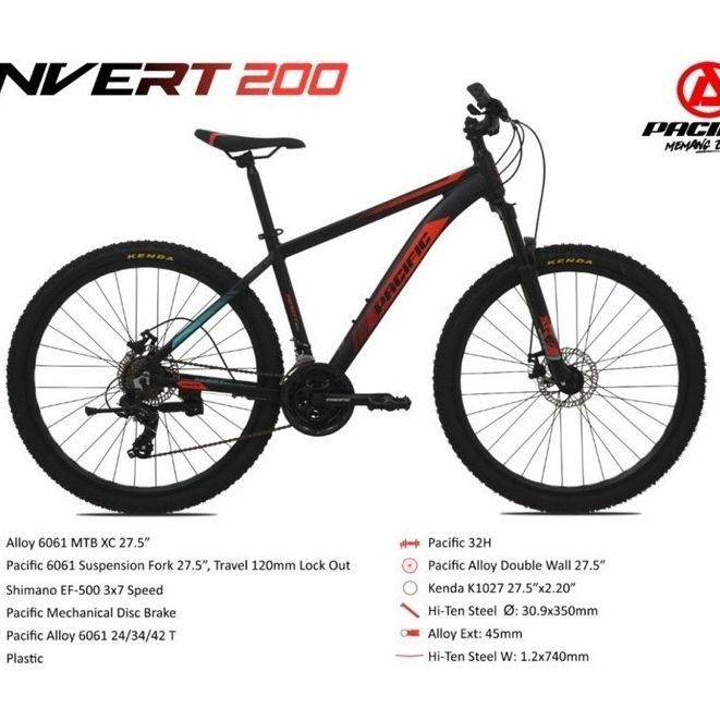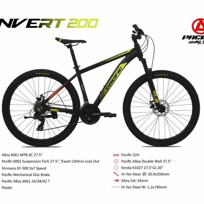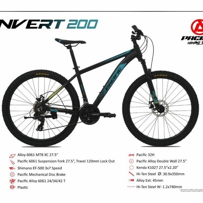 Sepeda27.5 inch mtb dewasa pacific frame alloy Invert 200 21 speed shimano rem cakram high quality sni new