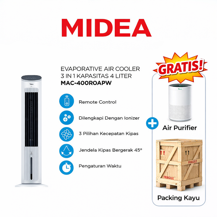 [Star] Air Cooler Dingin Terbaik MIDEA 3-in-1 Evaporative MAC-400R0BPH / MAC-400R0-APW Remote Lonizer TOSHIBA POLYTRON