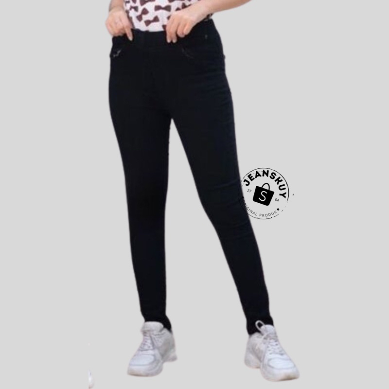 (Gratis Ongkir) JEANSKUY - Legging Jeans Jumbo Jeans Pinggang Karet Jumbo Celana Jeans Bigsize