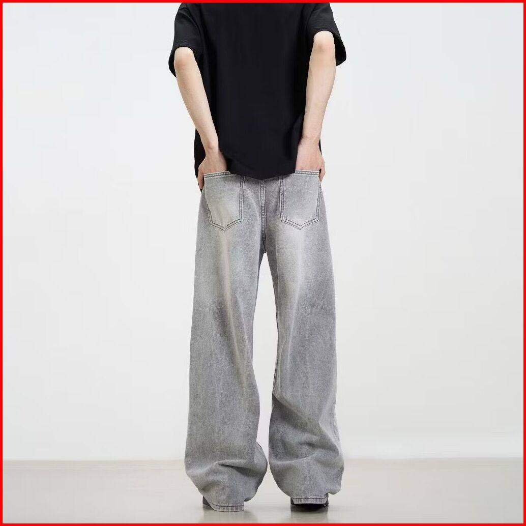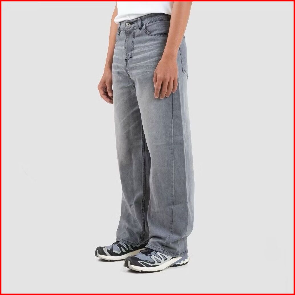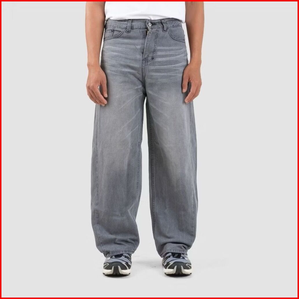 Celana Jeans Pria Washed Loose Fit Korean Style Celana Baggy Jeans Gombrong Abu Wisker Celana Jeans Highwaist Oversize
