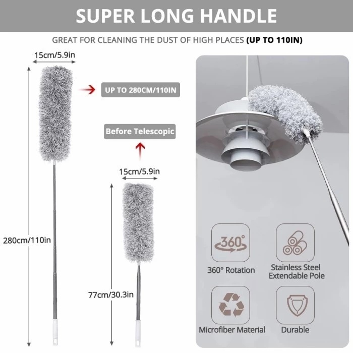 Kemoceng Microfiber Teleskopik 3 In 1 280CM Panjang Tarik Tekuk Fleksibel Teleskopik