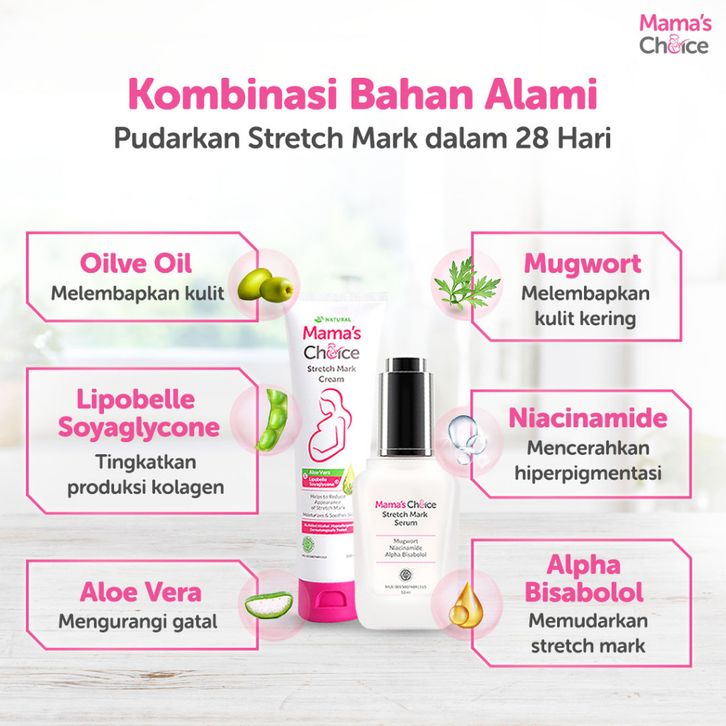 Mama's Choice Stretch Mark Treatment Series - Stretch Mark Cream + Serum / Obat Krim Strechmark BPOM Halal