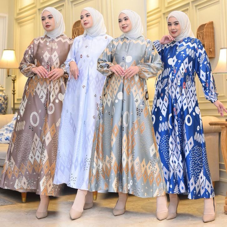 Gamis Laura Silk Premium Motif |Gamis Maxmara Motif Wanita Terbaru |Gamis Silky Premium |Gamis Motif Terbaru