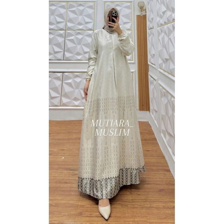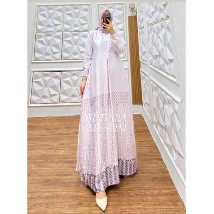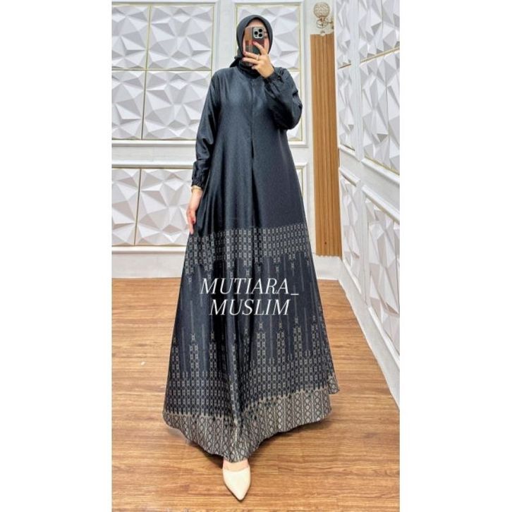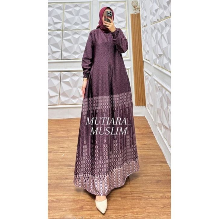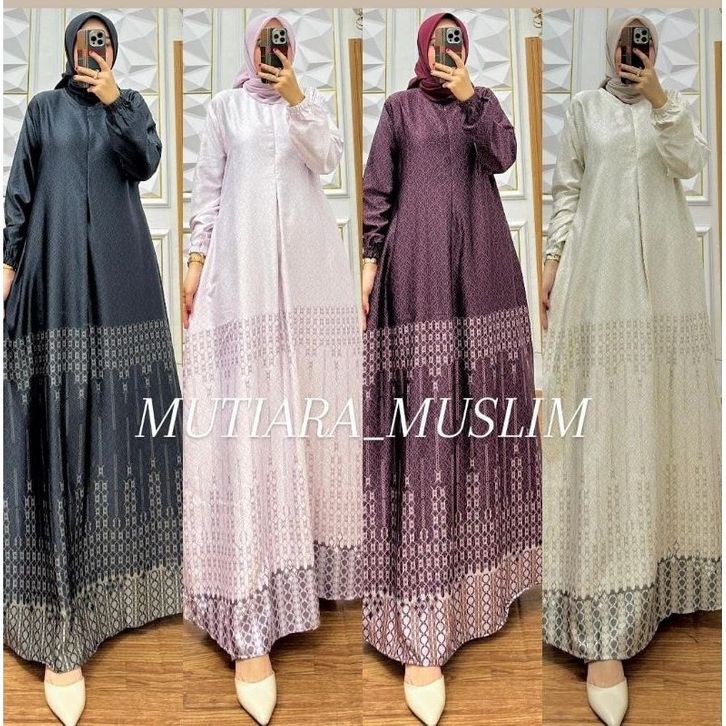 Gamis Moura Dress Bahan Silk Premium Motif Mewah Pesta Elegan Busui Frendly Ready Size Jumbo