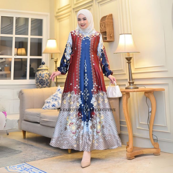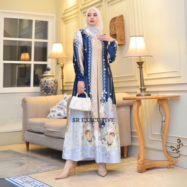 Gamis MEDINNA Silk Premium Motif Bunga Terbaru Dress Kondangan Nyaman panjang LD 130 Warna Cream Navy Sage Terlaris Leb