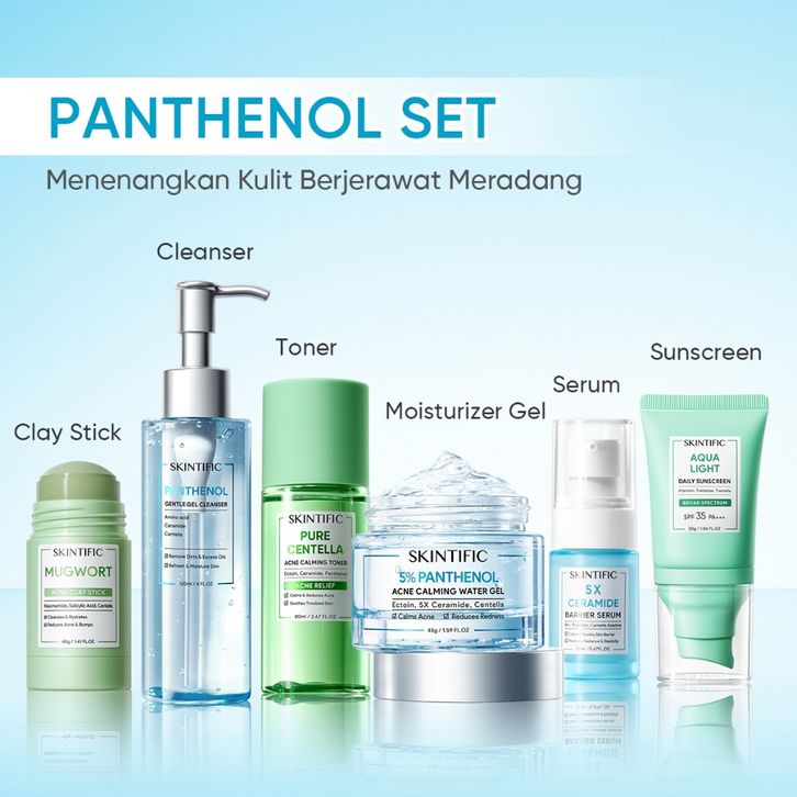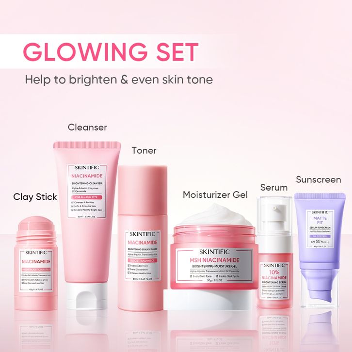SKINTIFIC-6pcs Paket-Skincare Set | Serum Moisturizer Gel Toner Sunscreen Cleansing Mouss Facial Wash Day Night Cream A