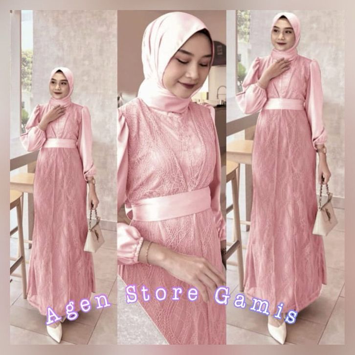 [ Super Murah ]Realpict ]Alika Gamis Brukat Mewah Dress Maxi Muslimah Kekinian Baju Fashion Remaja Dewasa Wanita Pesta