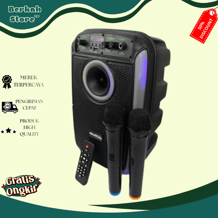 speaker bluetooth speaker karoke portable FLECO F-8208C 8'5 INCH FREE 2 MIC WIRELESS KARAOKE + REMOTE + KABEL USB