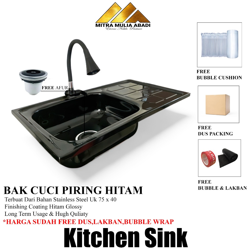 PROMO Bak Cuci Piring Hitam Stainless Steel 75cm Fullset Paket Lengkap Wastafel Kitchen Sink
