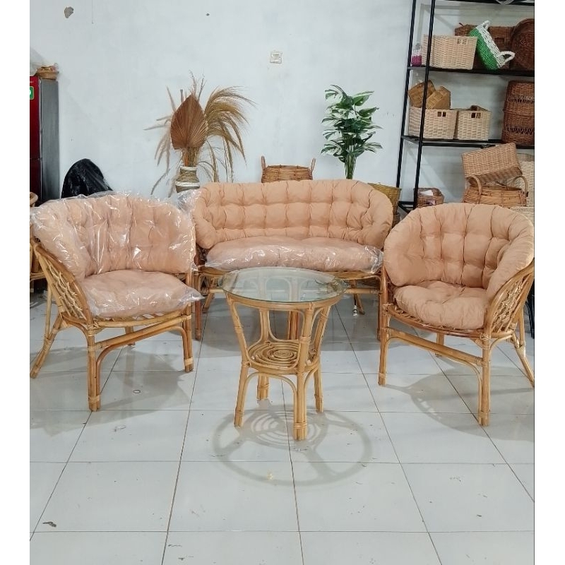 PR0MO 1 SET KURSI RUANG TAMU BAHAMA GRATIS BANTAL1 SET, 2 KURSI+1 SOFA+1 MEJA (MEJA ANYAM/KACA) KURSI TERAS MINIMALIS