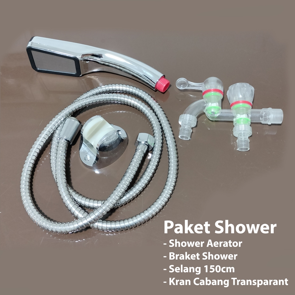 PROMO ESCA Paket Komplit Kran Chrome Shower Mandi Shower Aerator