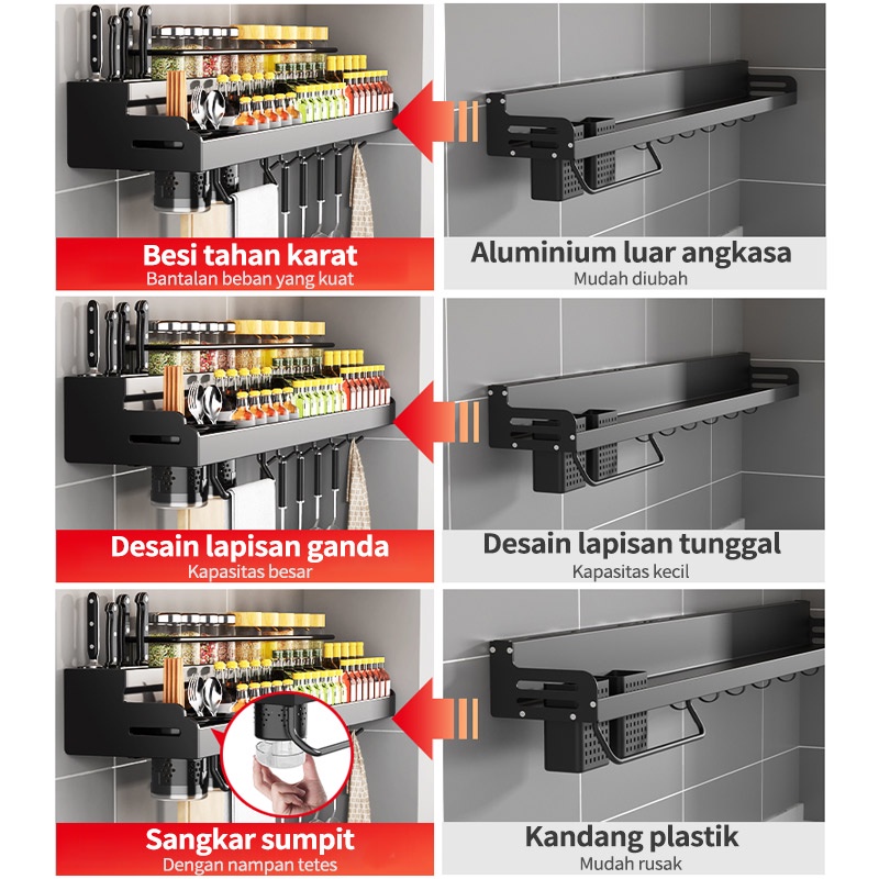 SIAP KIRIM - RAK BUMBU YANG DIPASANG DINDING RAK PENYIMPANAN DAPUR RAK PISAU HITAM RAK MULTIFUNGSI
