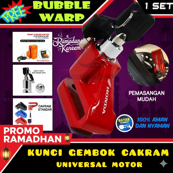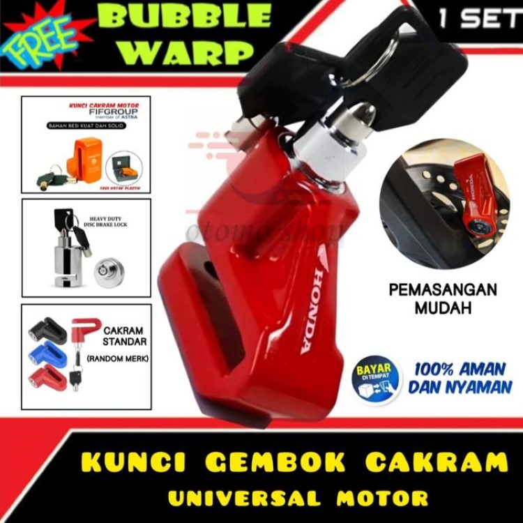 GEMBOK CEKRAM MOTOR ANTI MALING UNIVERSI ORIGINAL HONDA BAHAN BESI DISC KUNCI PENGAMAN SCOOPY VARIO AEROX PCX ADV CRF