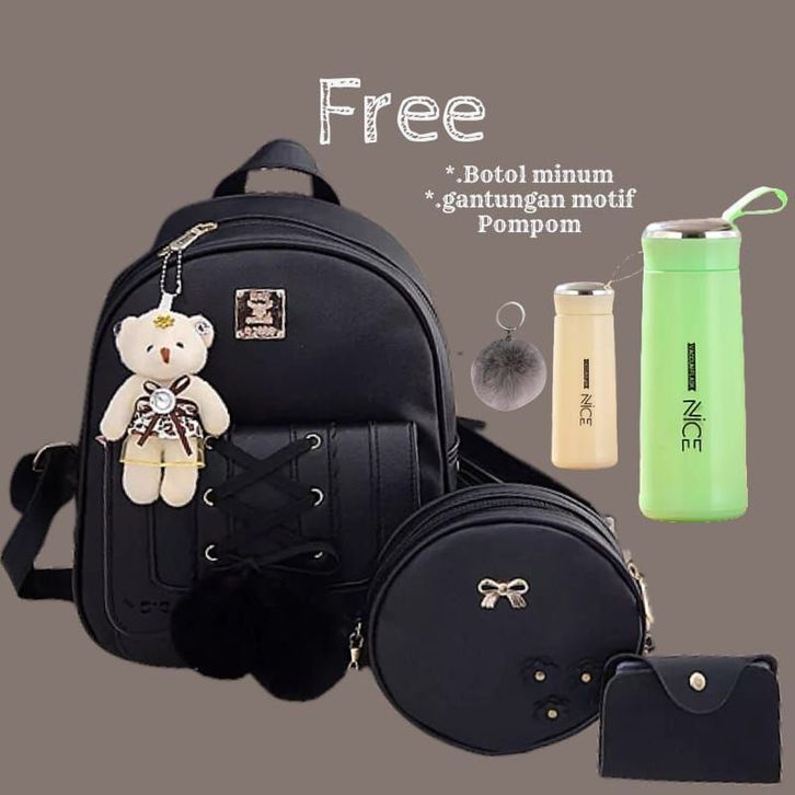 READY Tas Ransel Bacpack Pompom Fashion Wanita Korea Ransel Siswa Sekolah Menengah Pertama Sekolah Dasar Dalam Ransel Je