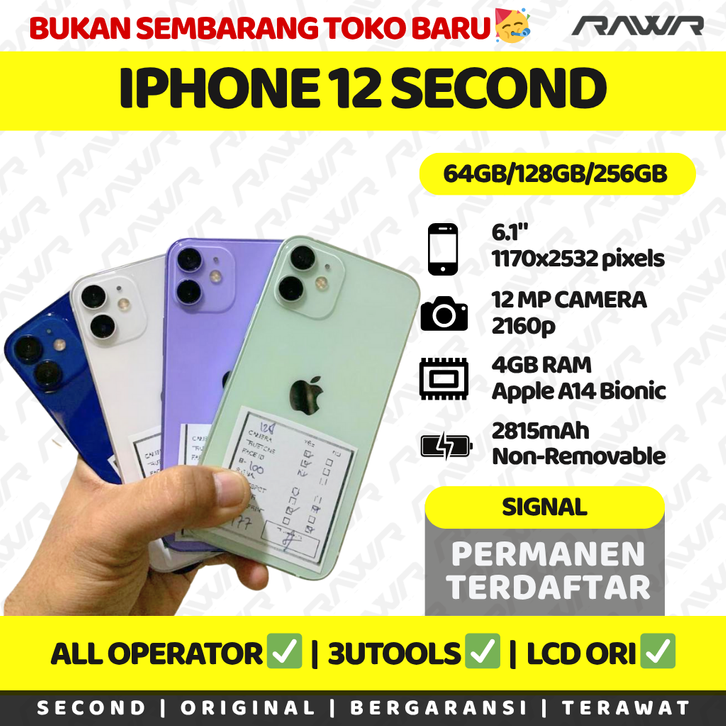 [RAWR MALL] IPHONE 12 64GB/128GB/256GB SIGNAL PERMANEN FULLSET SECOND TERAWAT