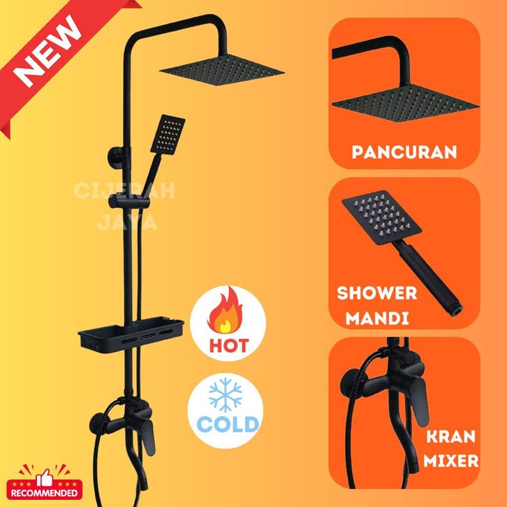 GROSIR SHOWER COLUMN SET PANAS DINGIN HITAM / SHOWER TIANG COLOUMN KOMPLIT STAINLESS adagc