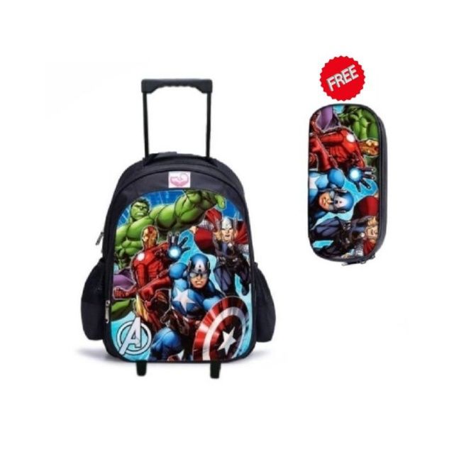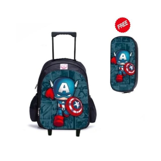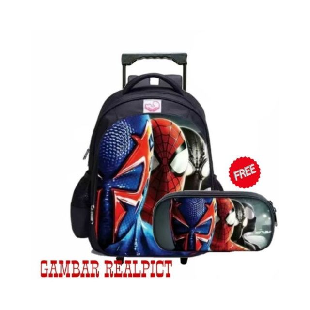 PROMO Tas troli anak COWOK TK 2in1 bisa Roda dan Ransel tas Roda Anak free pouch