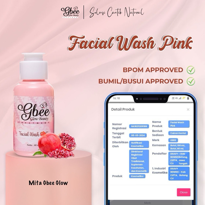 Gbee Glow Beauty Fial Wash Pink / Sabun Cuci Muka / Sabun Pembersih Wajah / Melembabkan Wajah