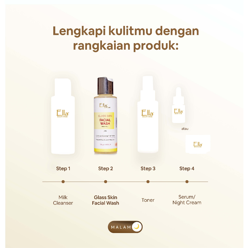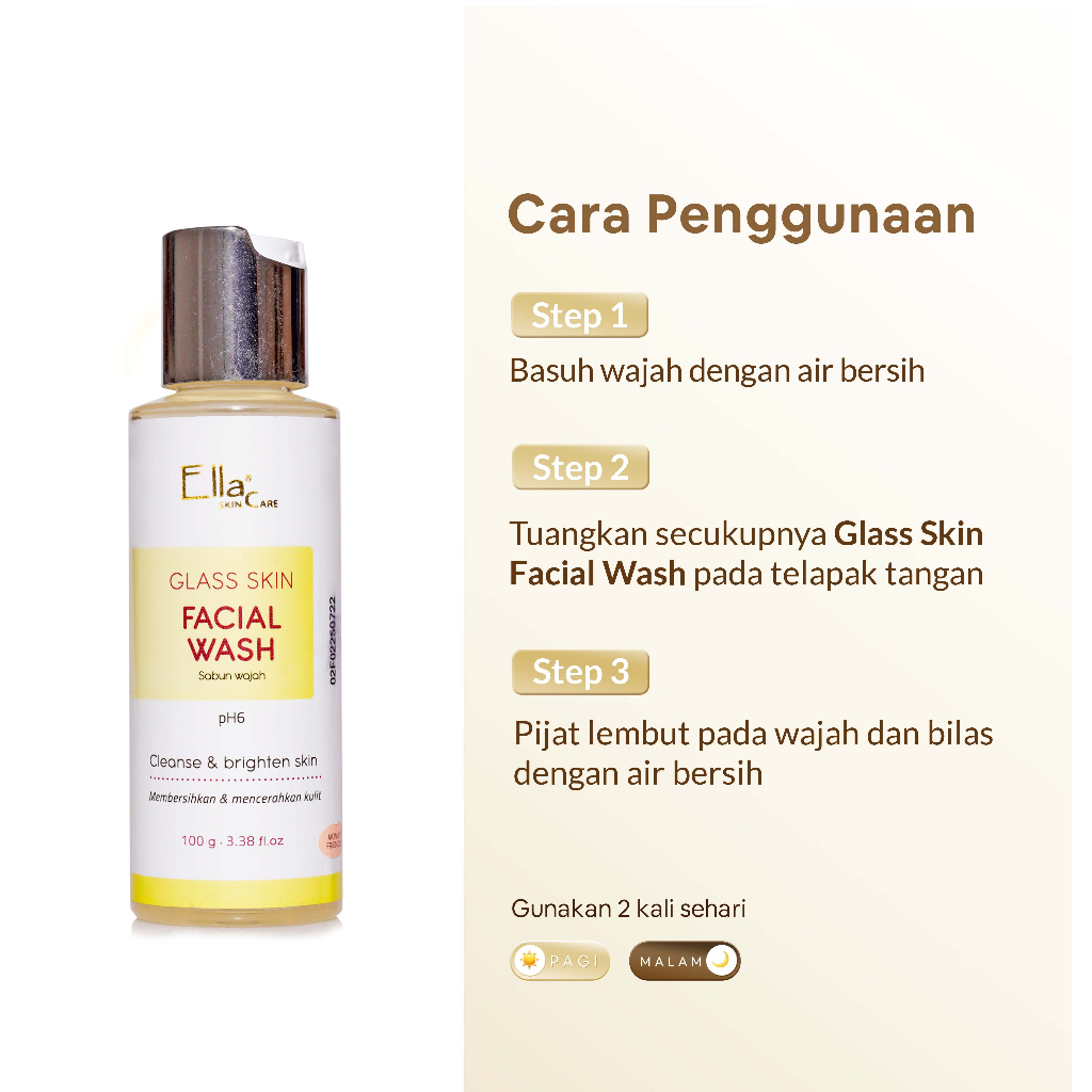 Ella Skincare Glass Skin Fial Wash with Glycolic id, Vit E, pH 6 - Kulit Cerah & Glowing