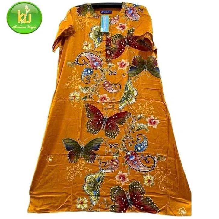 Daster DRESS DASTER LENGAN PENDEK / BATIK KENCANA UNGU LABEL BIRU / BAJU TIDUR WANITA RUMAHAN SANTAI